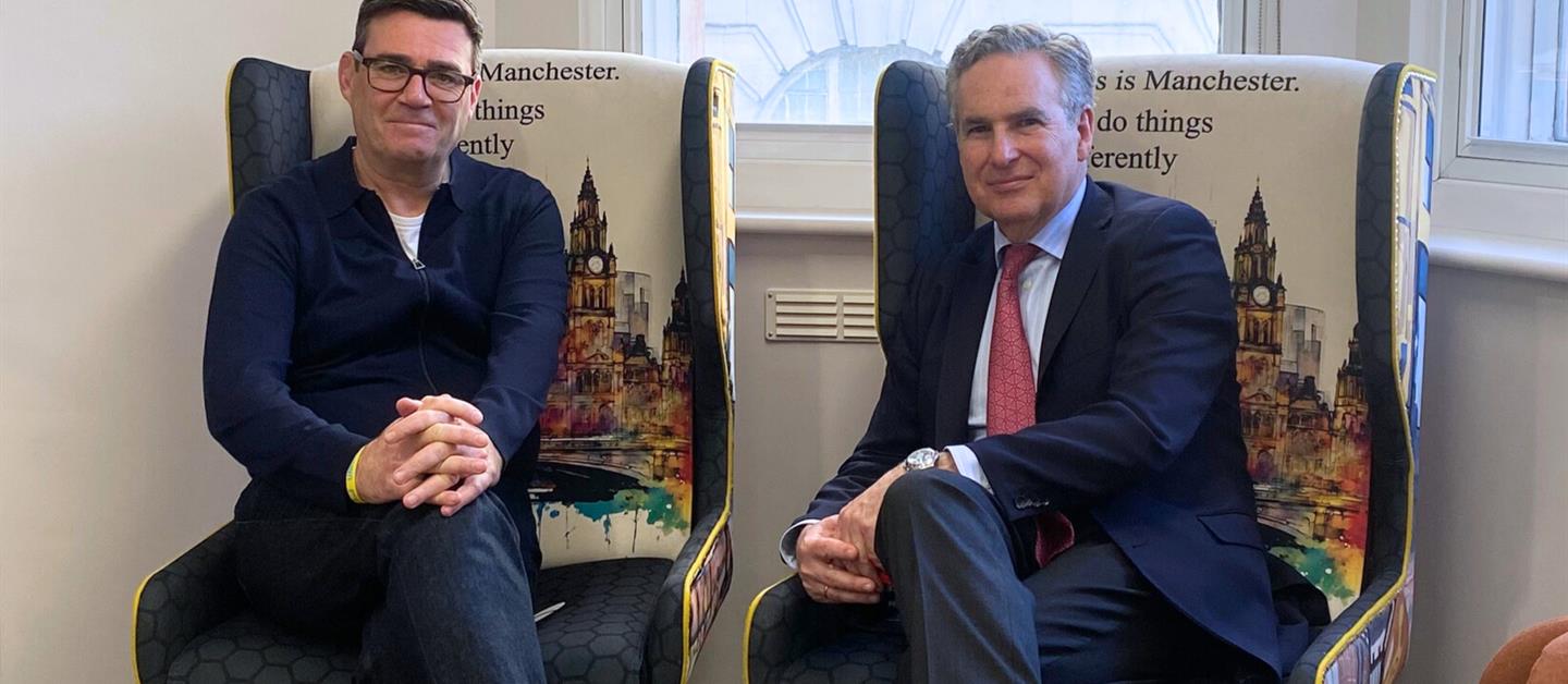 El Cónsul General de España en Mánchester, D. Alejandro Polanco Mata, se reunió este martes con el Alcalde de Greater Manchester, D. Andy Burnham, en la sede de la Greater Manchester Combined Authority.