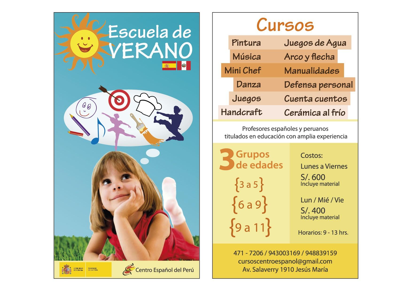 Un equipo de profesores españoles y peruanos con amplia experiencia ofrecerá, entre otros, cursos de pintura, música, arco y flechas, cocina, defensa personal, cerámica y danza. Los alumnos serán divididos en tres grupos de edades.