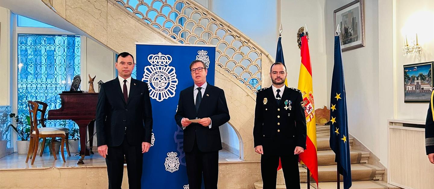 La Embajada de España en Rumanía ha organizado, el día 2 de octubre, un acto con motivo del día de la Policía Nacional. Además, este año se conmemora el 200 aniversario de su creación en 1824. El acto ha estado presidido por el Embajador de Epaña en Rumanía, José Antonio Hernández Pérez-Solorzano, y por el Secretario de Estado del Ministerio del Interior de Rumanía, Bogdan Despescu, y al mismo han asistido numerosos miembros de las Fuerzas y Cuerpos de Seguridad del Estado de Rumanía, de entre los cuales tres han sido condecorados con la Cruz al mérito policial con distintivo blanco. Los tres condecorados han sido Cornel Stoica, Inspector General de Policía de Fronteras; Aloma Bogdana Istrate, Comisaria Jefa la Unidad de investigación de delitos económicos de la policía rumana y Stefan Balaban, fiscal especializado en lucha contra el crimen organizado y terrorismo.