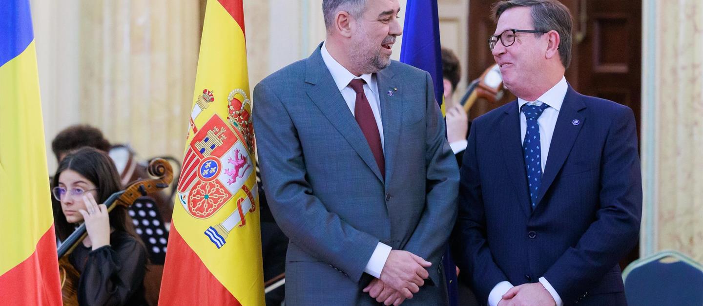 La Embajada del Reino de España en Bucarest ha organizado un año más la celebración anual de la Fiesta Nacional del 12 de octubre. En esta ocasión, ha sido un honor contar con la presencia y el discurso del Primer Ministro de Rumanía, S. E. Marcel Ciolacu. A la celebración asistieron, además, una amplia representación de autoridades rumanas de diversos ministerios, así como de otras altas instituciones del Estado, junto con representantes del Cuerpo Diplomático, miembros de la sociedad civil y del ámbito económico y empresarial.