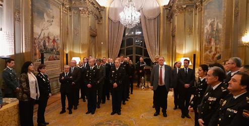 Este jueves, 28 de noviembre, se celebró en la Embajada de España en Francia la ceremonia anual de condecoración por parte del Gobierno de España a miembros de los Servicios franceses de Seguridad, de Información y de Inteligencia, un acto destinado a poner en valor la estrecha colaboración diaria entre España y Francia en la lucha contra múltiples amenazas para nuestros valores compartidos y nuestras sociedades, amenazas como el terrorismo, la criminalidad organizada, o el tráfico y la explotación de seres humanos. Así lo destacaron las autoridades desplazadas desde Madrid para la ocasión: la Secretaria de Estado – Directora del Centro Nacional de Inteligencia, el Director Adjunto Operativo de la Guardia Civil, la Jefa de la División de Cooperación Internacional y miembros de la Junta de Gobierno de la Policía Nacional.