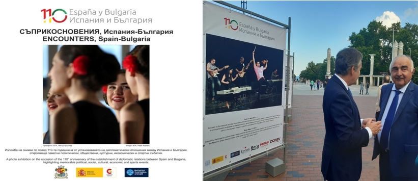 La Embajada de España, en colaboración con la Agencia de Telecomunicaciones Búlgara (BTA) y el Ayuntamiento de Sofía han exhibido en la galería al aire libre del Jardín del Teatro de Sofía la muestra fotográfica “Encuentros. España Bulgaria”. Esta exposición se ha realizado con ocasión del 110º aniversario del establecimiento de relaciones diplomáticas entre España y Bulgaria y se exhibió por primera vez en noviembre de 2020 en el jardín “Cristal” de Sofía.