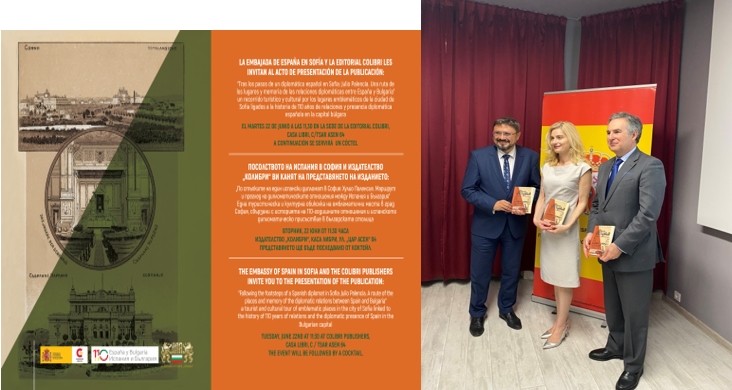 El 22 de junio, en la sede de la editorial COLIBRI, Casa Libri, ha tenido lugar el acto de presentación de la publicación “Tras los pasos de un diplomático español en Sofía: Julio Palencia. Una ruta de los lugares y memoria de las relaciones diplomáticas entre España y Bulgaria”- un recorrido turístico y cultural por los lugares emblemáticos de la ciudad de Sofía ligados a la historia de 110 años de relaciones y presencia diplomática española en la capital búlgara.
