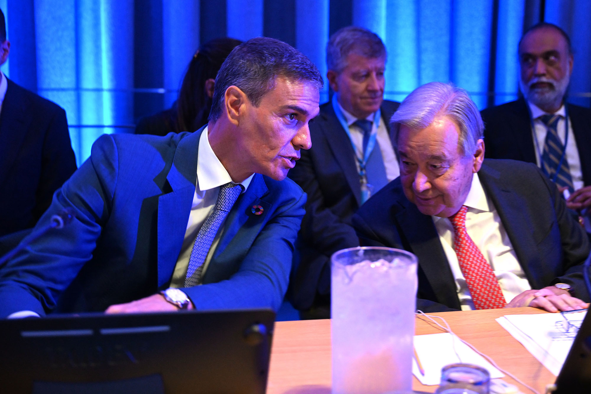 El jefe del Ejecutivo, Pedro Sánchez, y el secretario general de Naciones Unidas, António Guterres, en el lanzamiento del "Diálogo mundial sobre gobernanza de la Inteligencia Artificial". | Pool Moncloa/Borja Puig de la Bellacasa