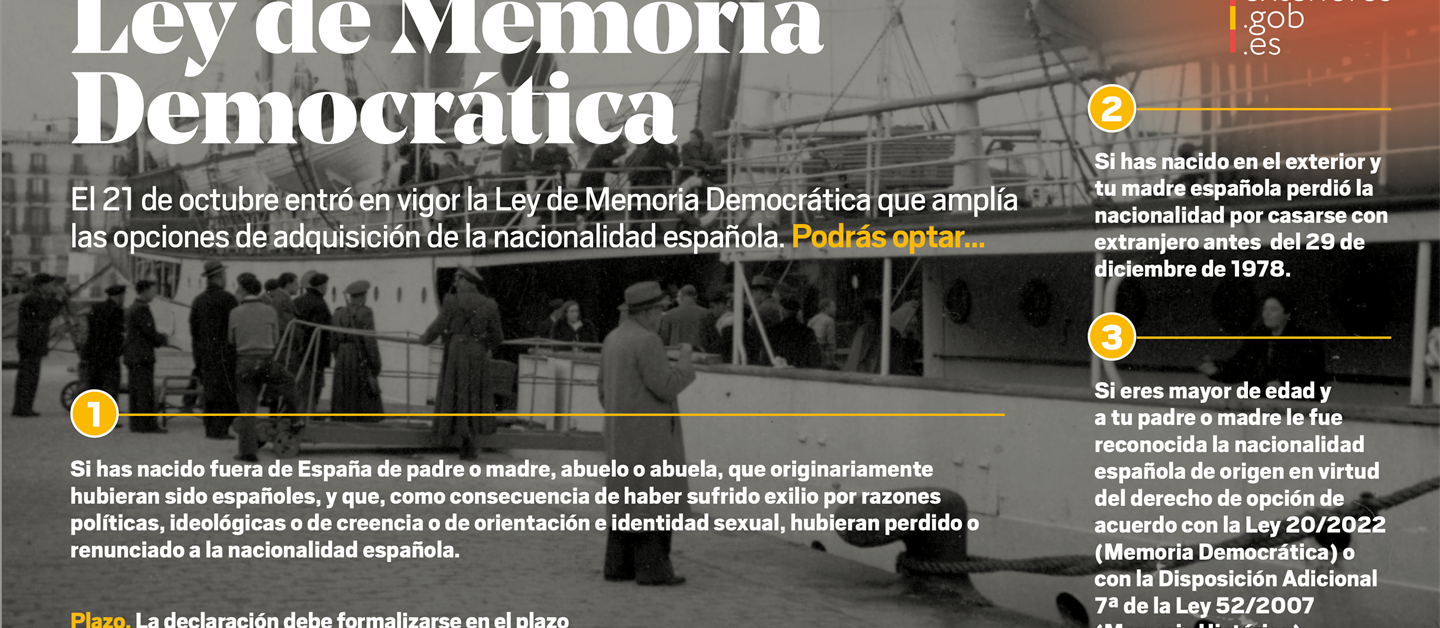 El próximo 22 de octubre de 2025 finaliza el plazo para optar a la nacionalidad española conforme a la Ley 20/2022, de 19 de octubre, de Memoria Democrática (LMD).
