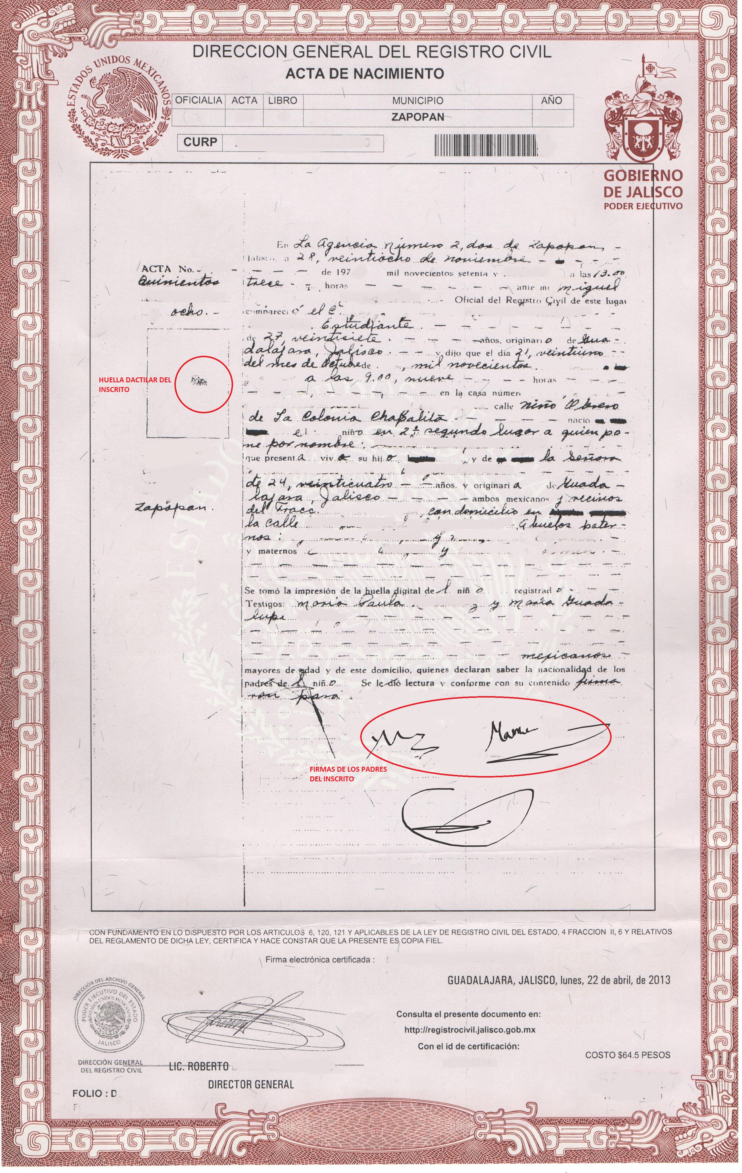 -) y apostillada. 6. Acta de nacimiento literal (copia fiel - ver ejemplo