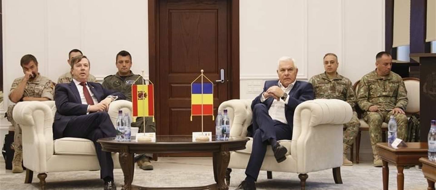 Invitado por el Ministro de Defensa Nacional de Rumanía, Excmo. Sr. Angel Tilvar, el Embajador ha asistido a la ceremonia de certificación del destacamento de las Fuerzas Aéreas Españolas que ha sido desplegado en Rumanía para realizar misiones de policía aérea conjunta (Enhanced Air Policing) con las FF.AA. rumanas. El destacamento español se compone de 150 militares – pilotos y personal técnico – y ocho aviones F-18 Hornet.