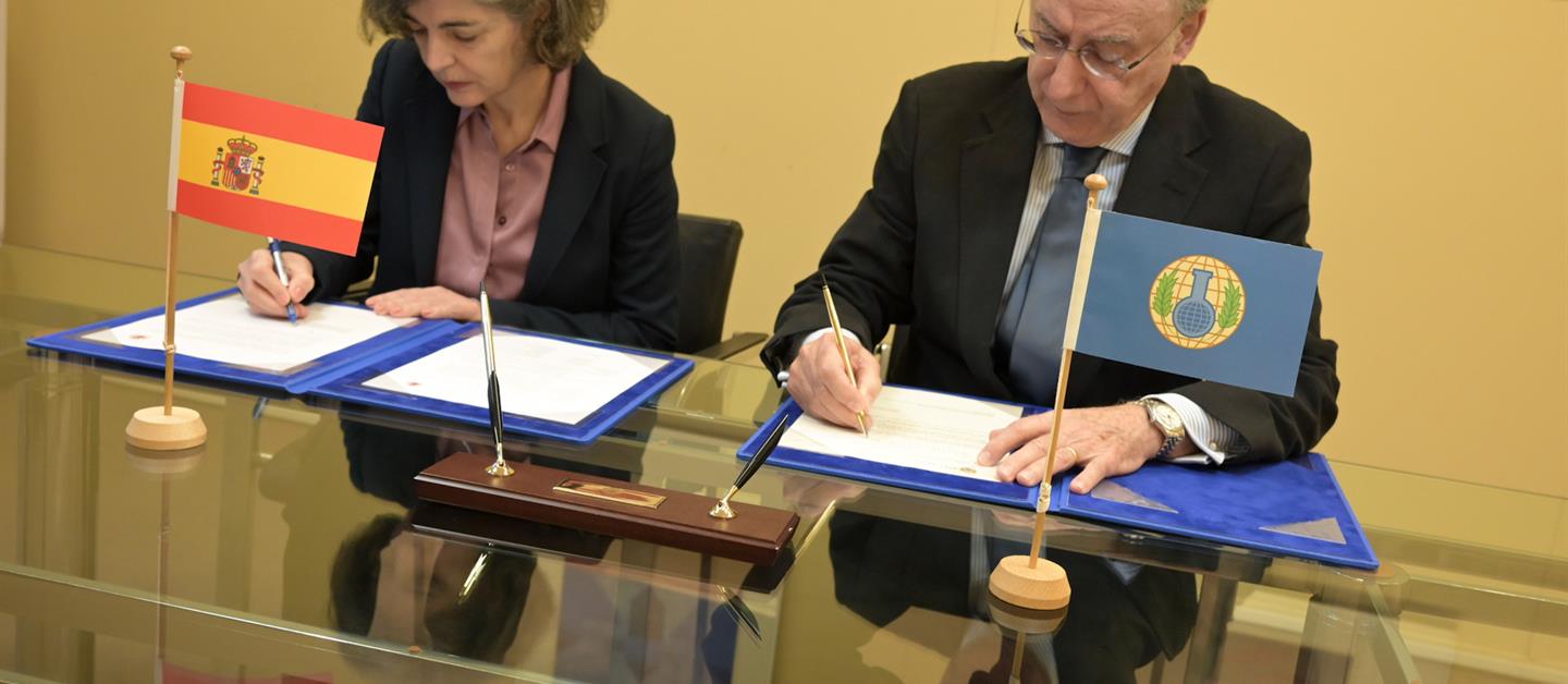 La Embajadora de España, Consuelo Femenía, ha formalizado hoy, mediante intercambio de cartas con el Director General de la OPAQ, Fernando Arias, la contribución voluntaria en beneficio del Fondo Fiduciario para la Misión Especial en Siria aprobada por el Gobierno de España.